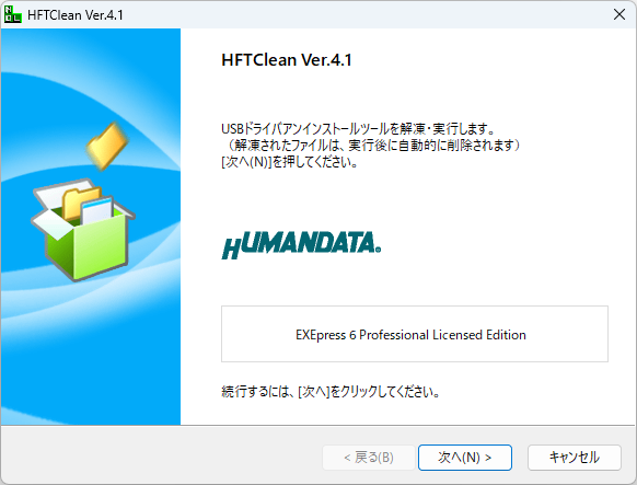 | HFTClean.exe HuMANDATA USBドライバアンインストールツール Ver.4 |