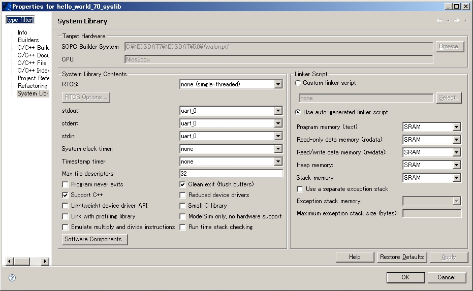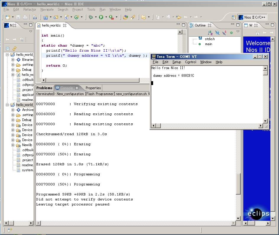 ごらんのように、uart_0にプログラムの出力が表示されています。