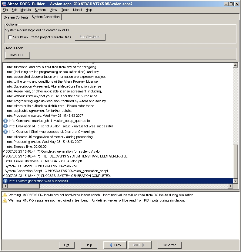| Genarationします。 そしてコンパイルし、コンフィグレーションしてください。 |